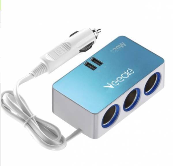 Разветвитель прикуривателя в авто VEECLE KY-072 (3 гнезда+2*USB)