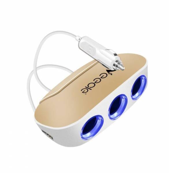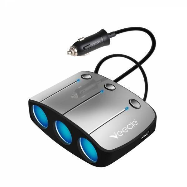 Разветвитель прикуривателя в авто VEECLE KY-558C (3 гнезда+2*USB)