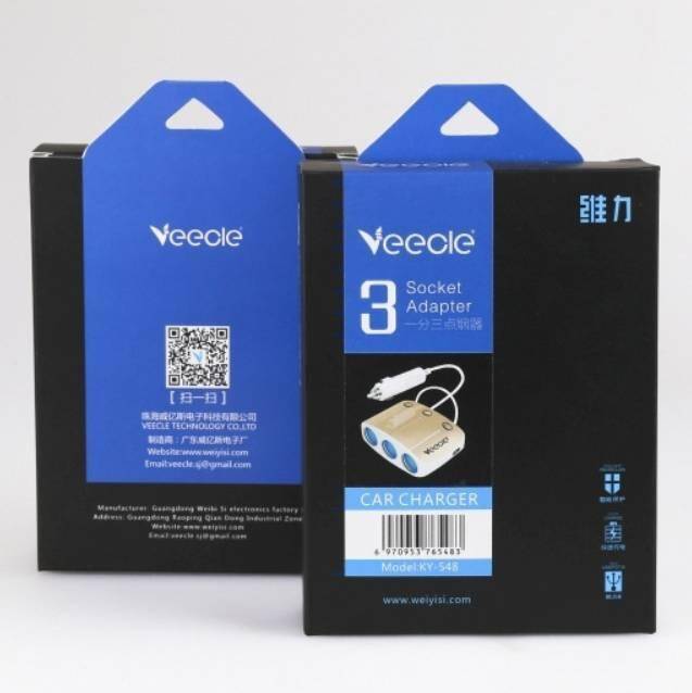 Разветвитель прикуривателя в авто VEECLE KY-548 (3 гнезда+2*USB)