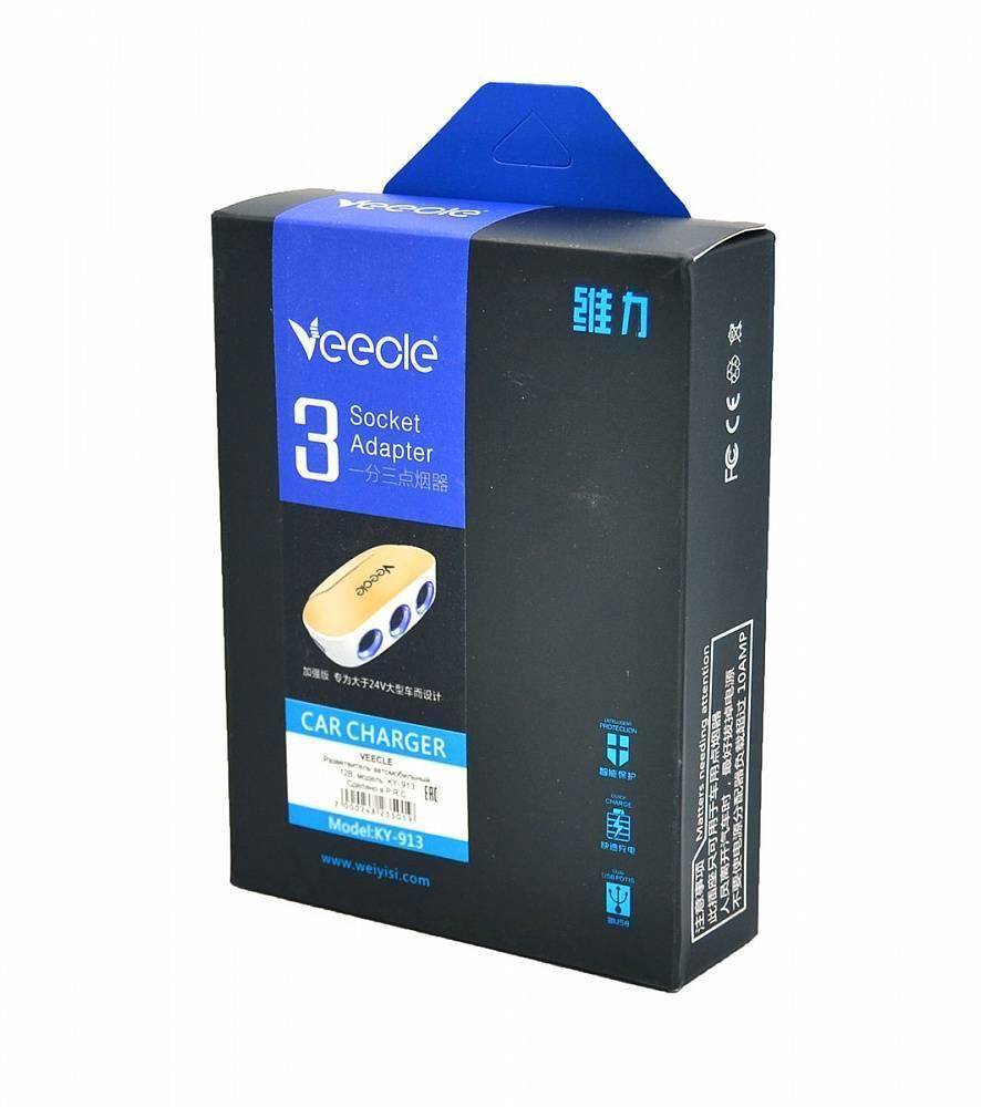 Разветвитель прикуривателя в авто VEECLE KY-913 (3 гнезда+2*USB)