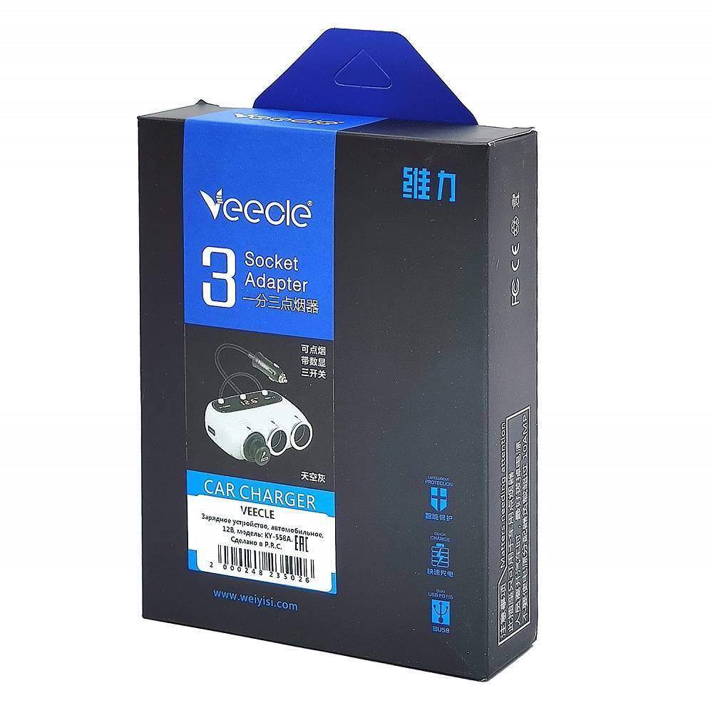 Разветвитель прикуривателя в авто VEECLE KY-558A (3 гнезда+2*USB)