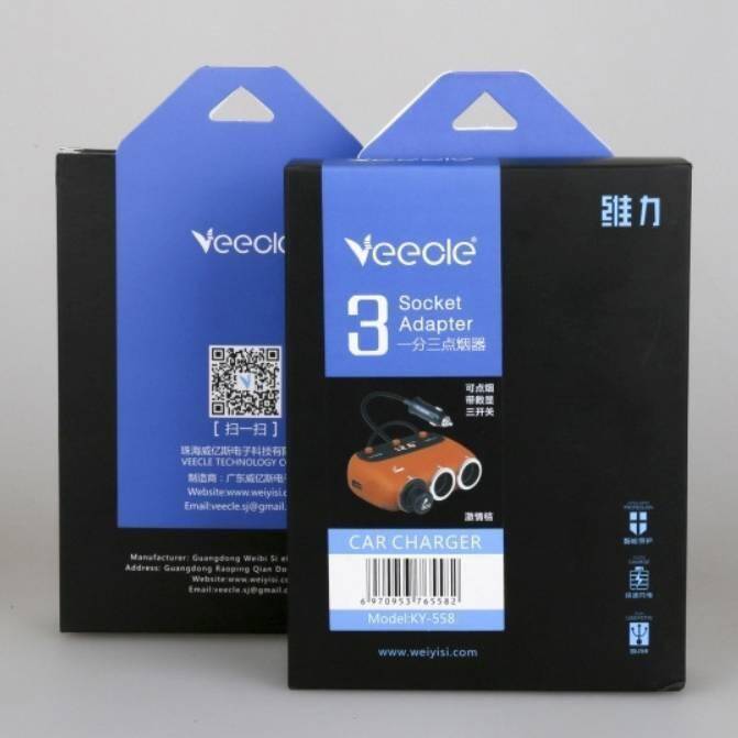 Разветвитель прикуривателя в авто VEECLE KY-526 (2 гнезда+2*USB)