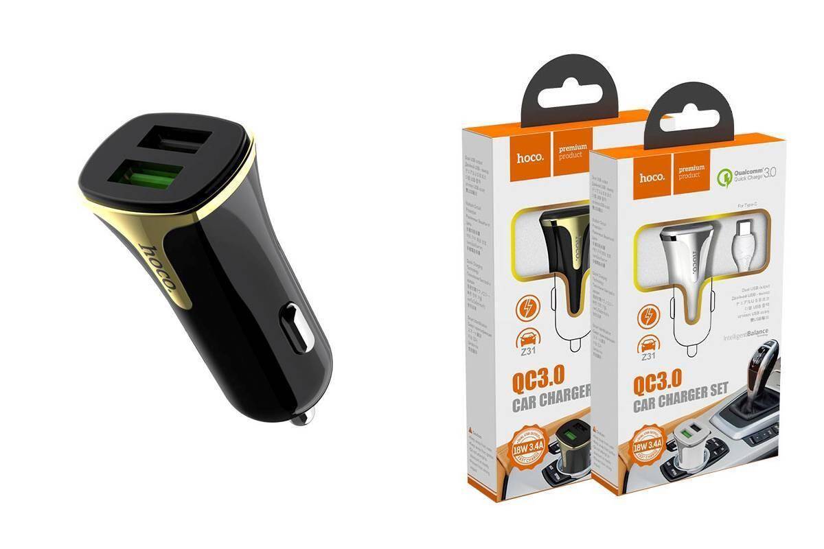 Автомобильное зарядное устройство АЗУ 2USB HOCO Z31 Universe double port QC3.0 (черный)