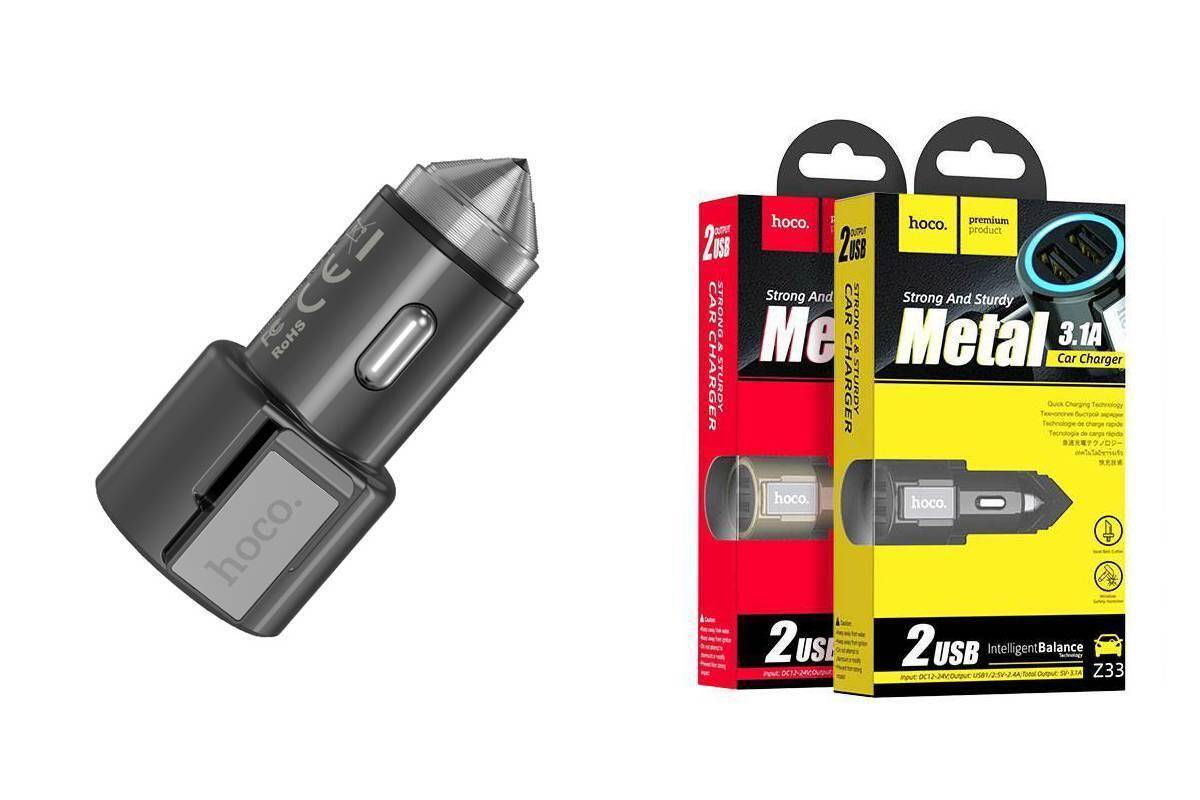 Автомобильное зарядное устройство АЗУ 2USB HOCO Z33 Sword double port multi-function (серый)