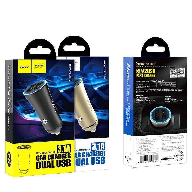 Автомобильное зарядное устройство АЗУ 2USB HOCO Z30 Easy route 3100 mAh (черный)