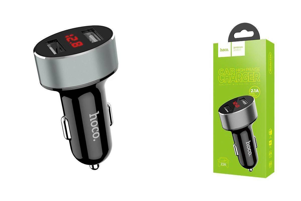Автомобильное зарядное устройство АЗУ 2USB HOCO Z21 Ascender l display (черный)