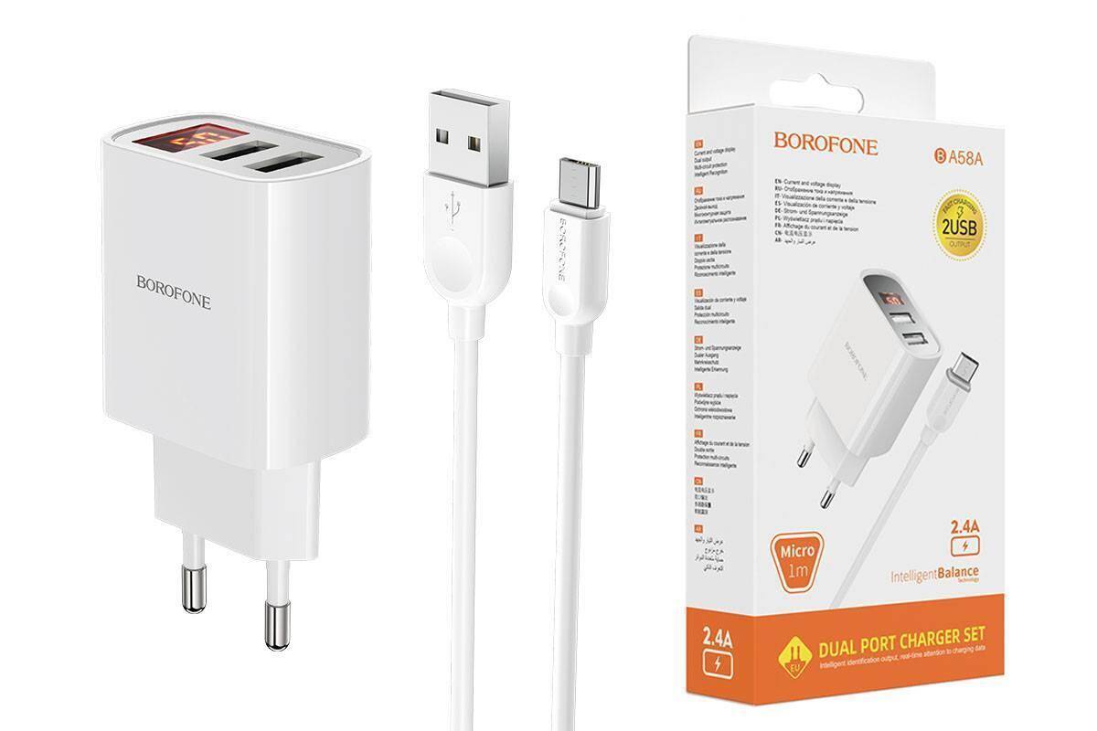 Сетевое зарядное устройство 2USB + кабель MicroUSB BOROFONE BAS41A Potential (белый)