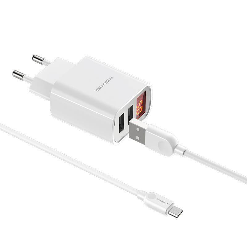 Сетевое зарядное устройство 2USB + кабель MicroUSB BOROFONE BA37A Speedy 2400mAh (белый)