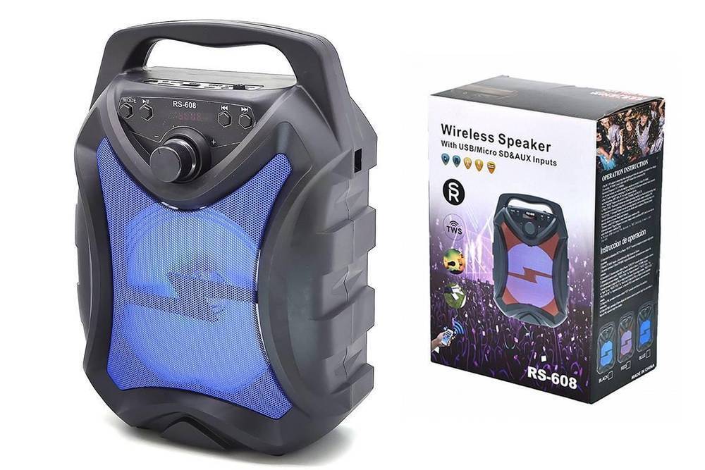 Портативная беспроводная колонка Perfeo "DEEPTONE" с подсветкой (черный)