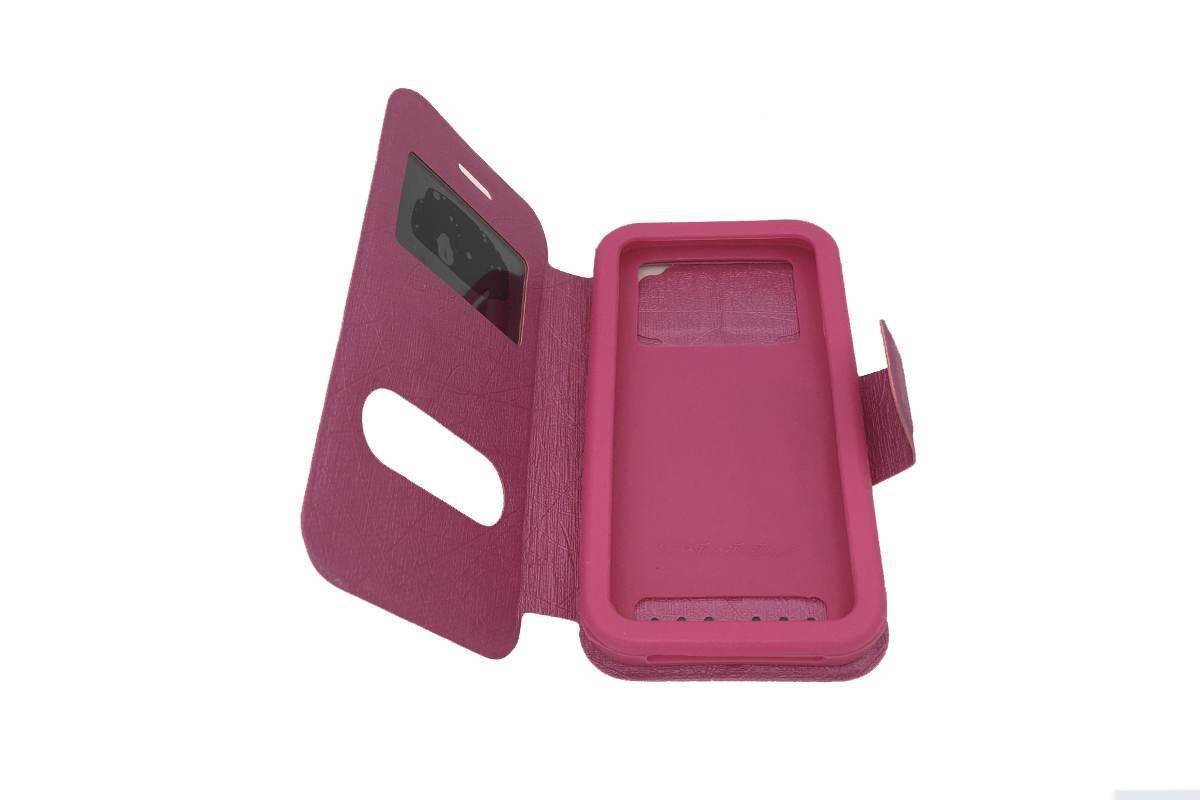 Чехол книжка универсальный, с окошком (силик. вставка) 5,5 дюймов (розовый)