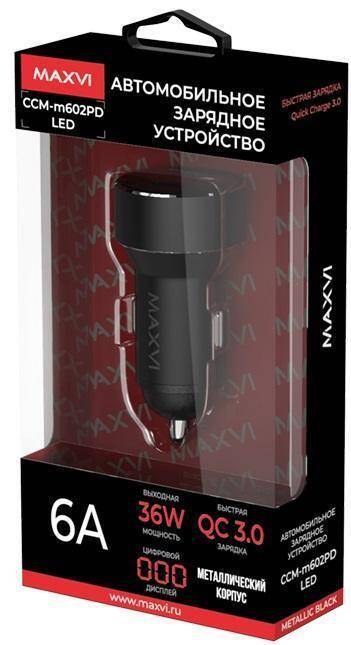 Автомобильное зарядное устройство АЗУ USB + кабель Type-C Maxvi (CCM-M602PD) (черный)