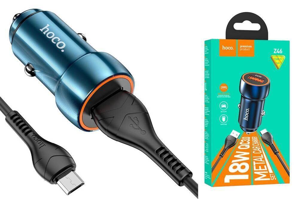 Автомобильное зарядное устройство АЗУ USB + кабель Type-C HOCO Z46 Blue QC3.0 (синий)