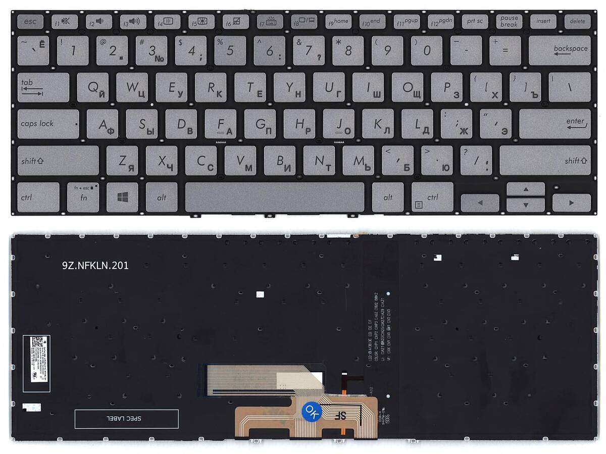 Клавиатура для ноутбука Asus Zenbook UM431DA серебристая