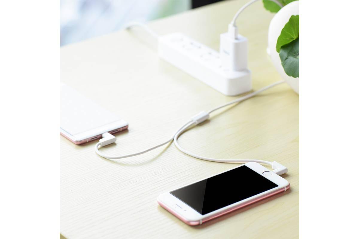 Кабель USB 2 в 1 HOCO X12 2 in 1 lightning / Micro (белый) 1м (магнитные наконечники)