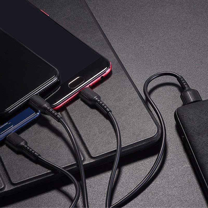 Кабель USB 3 в 1 BOROFONE BX16 Type-C/Lightning/MicroUSB 2.4A (черный) 1м