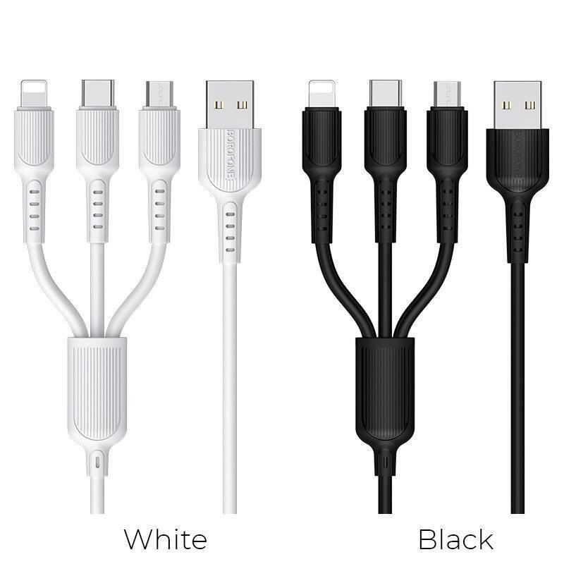 Кабель USB 3 в 1 BOROFONE BX16 Type-C/Lightning/MicroUSB 2.4A (белый) 1м