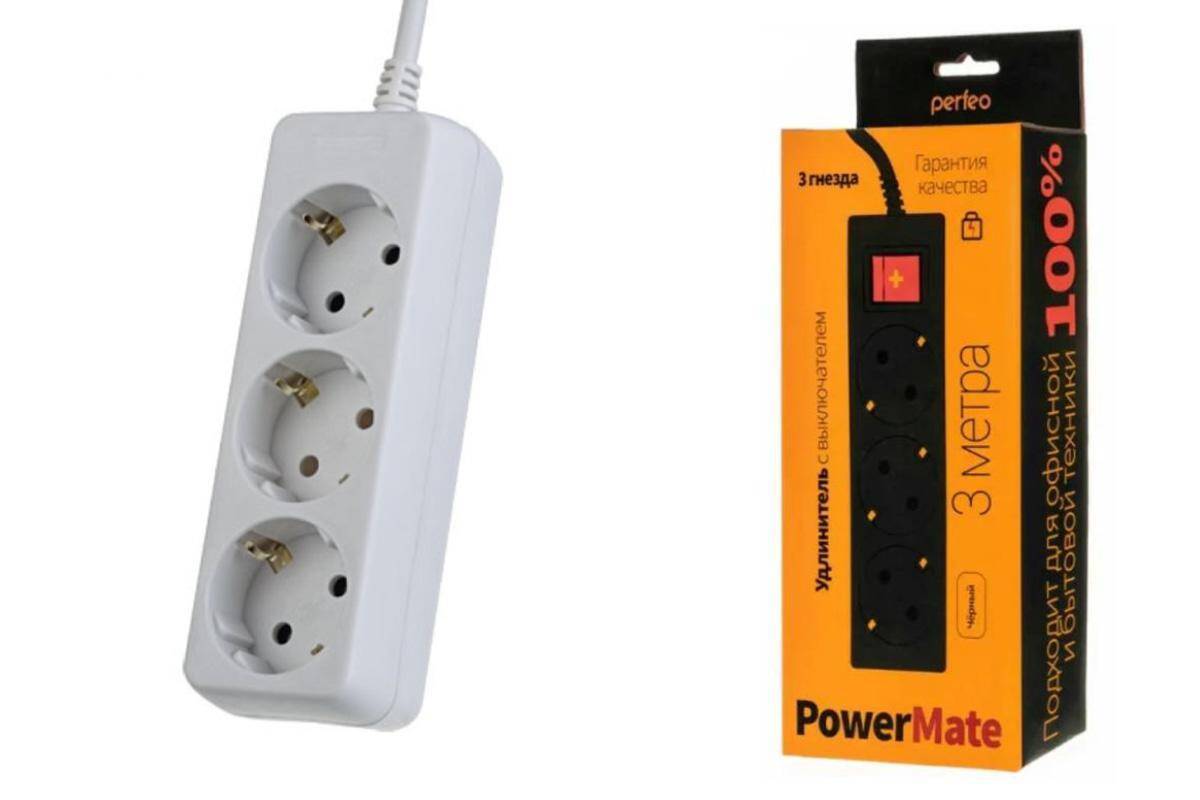 Сетевой удлинитель Perfeo с заземлением "POWERMATE", 3,0м, 3 розетки, белый (PF-PE-3/3,0-W)