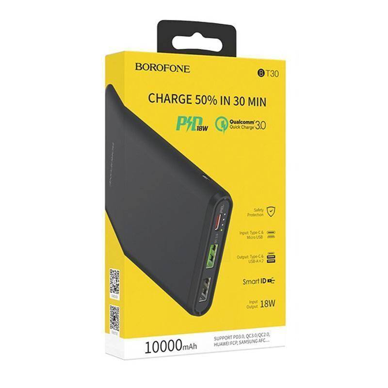 Универсальный дополнительный аккумулятор Power Bank BOROFONE BT30 PD+QC3.0 (10000 mAh) (черный)
