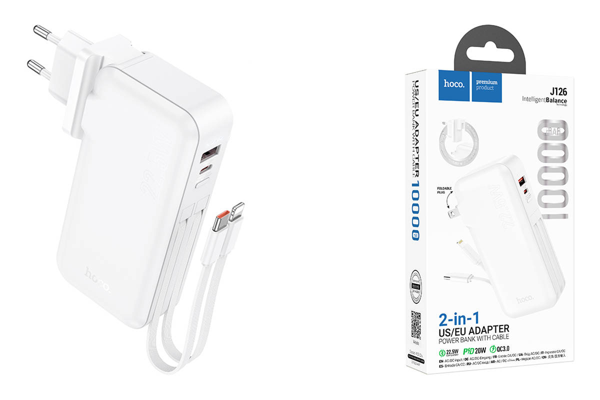 Универсальный дополнительный аккумулятор Power Bank HOCO J126 Travel 22.5W with cable (US/EU) (10000mAh) (белый)