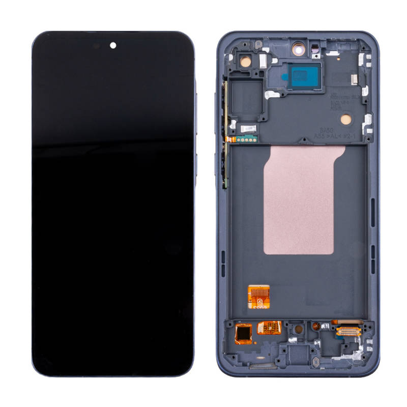 Дисплей для Samsung A556E Galaxy A55 5G в сборе с тачскрином + рамка (черный) OLED (Big glass)