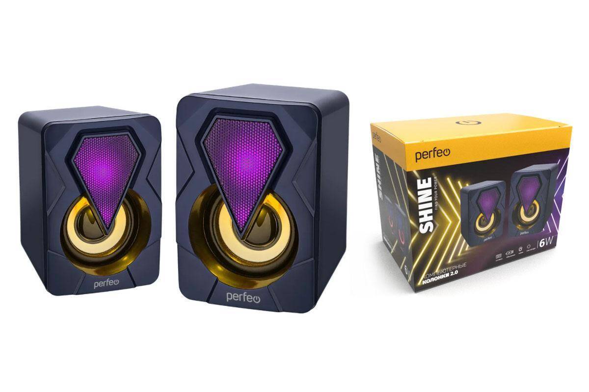 Акустическая система 2.0 Perfeo "SHINE" PF_A4438 мощность 2х3 Вт, USB, LED подсветка (черный)