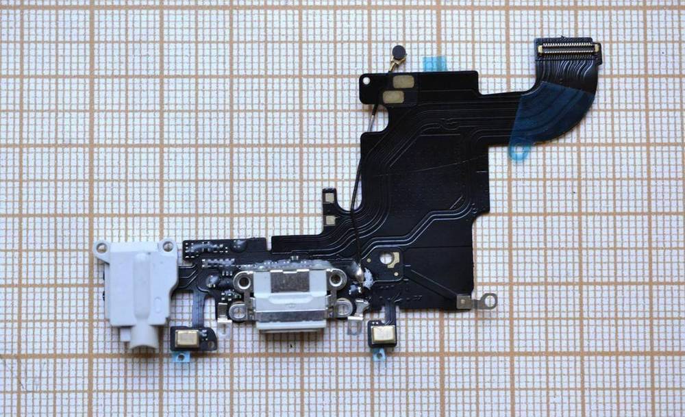 Шлейф для iPhone 6s (4.7) с разъемом зарядки + разъем гарнитуры + микрофон (серый) org разбор