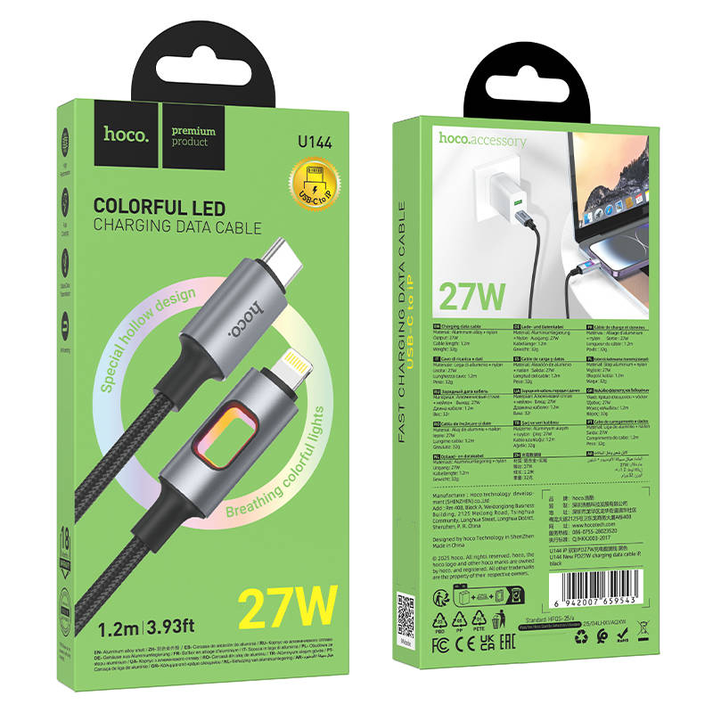 Кабель USB Type-C - Lightning HOCO U144 New PD27W (черный)