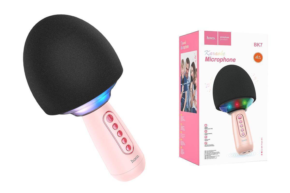 Караоке микрофон HOCO BK7 (Bluetooth, динамики,TF) (ABSOLUT) (розовый)