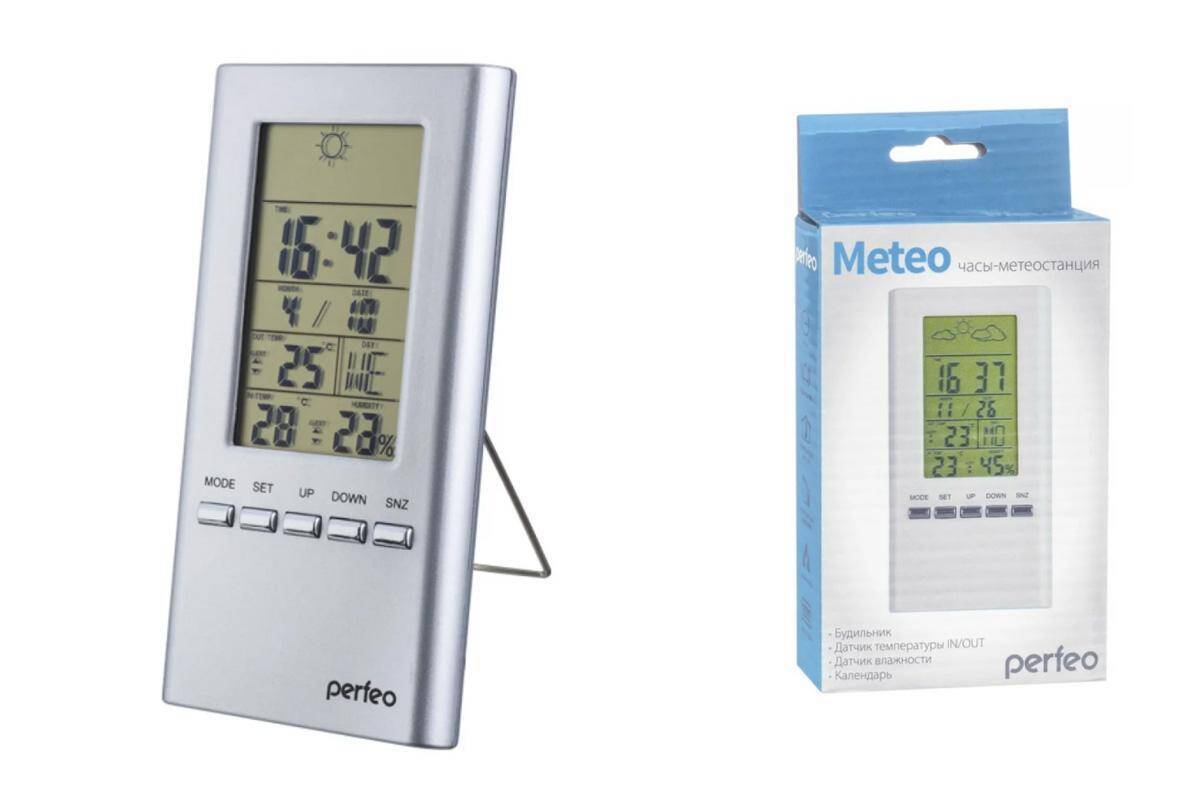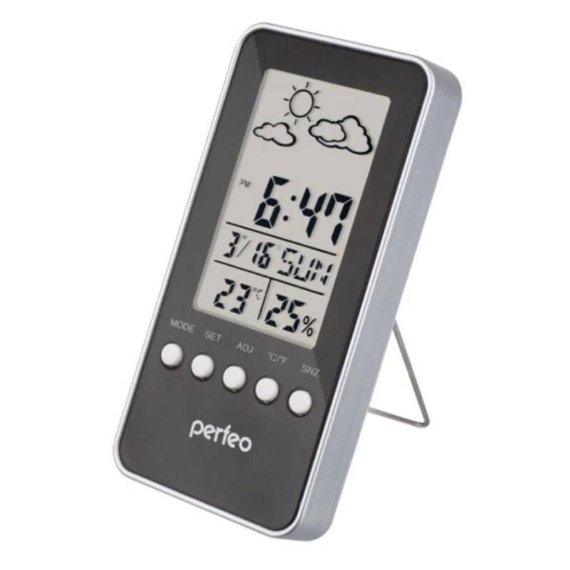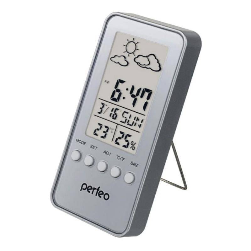 Часы-метеостанция Perfeo "Meteo", серебряный, время, темп., датчик ул. темп., влажность (PF-S3331F)