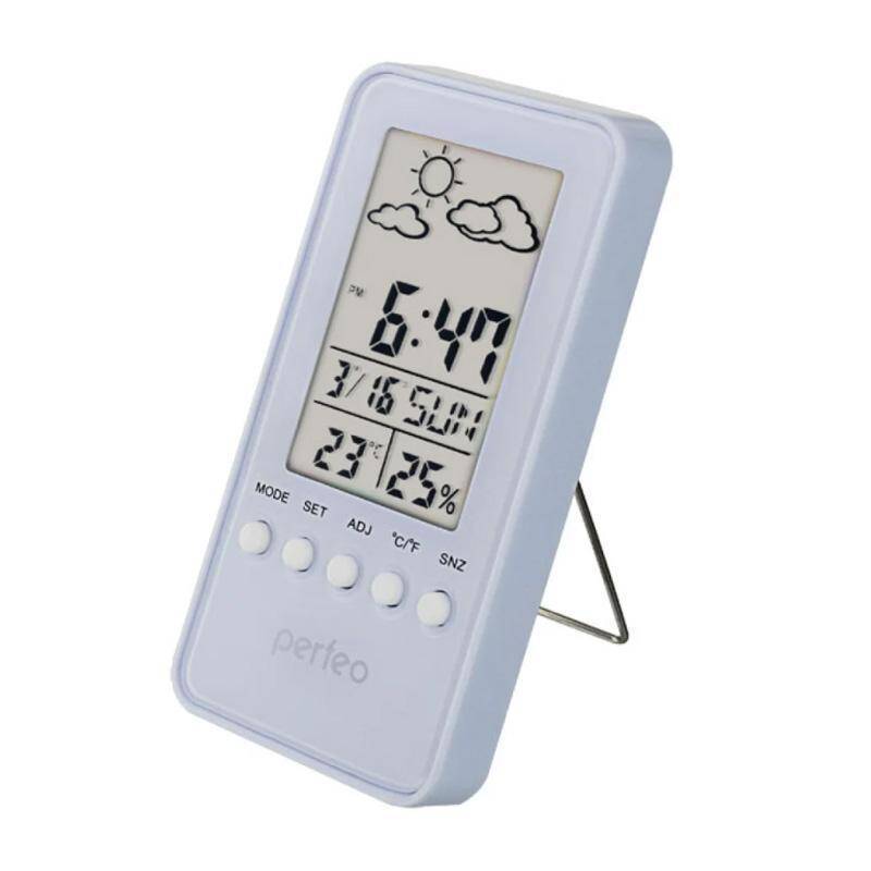Часы-метеостанция Perfeo "Window", белый, время, температура, влажность, дата (PF-S002A)