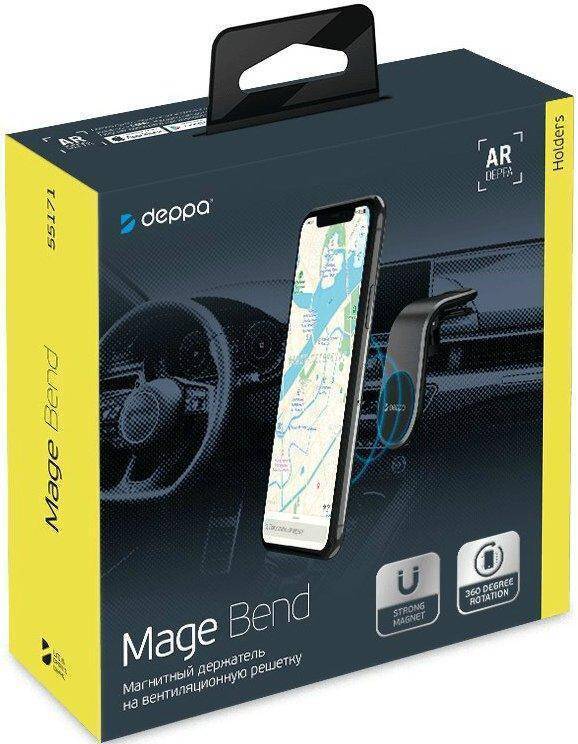 Держатель автомобильный для телефона Deppa (55171) Mage Bend, черный магнитный