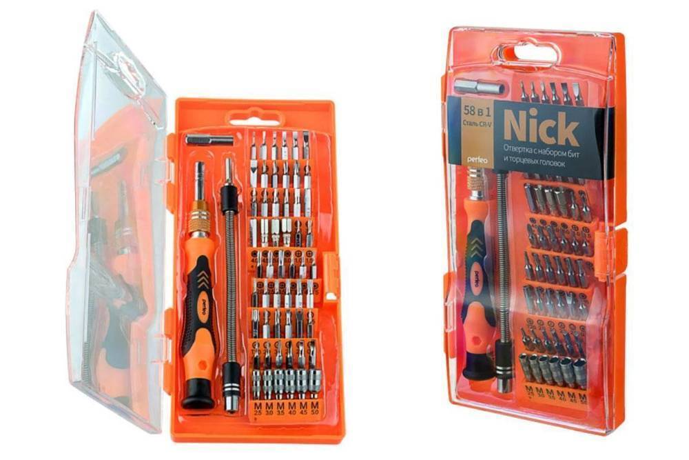 Набор инструмента отверток и головок Perfeo Nick с битами (насадками) 58 в 1