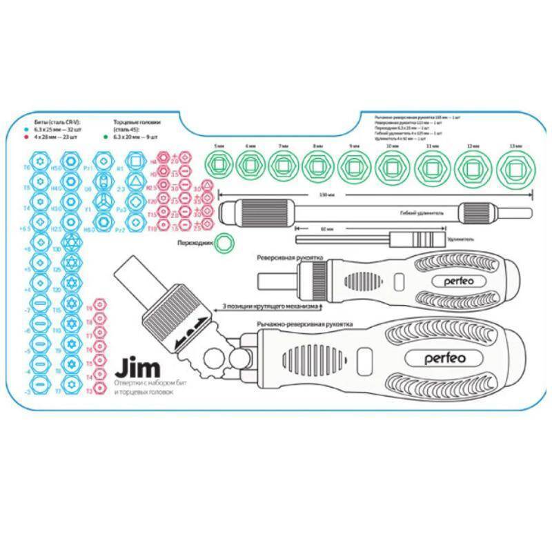 Набор инструмента отверток и головок Perfeo Jim с битами (насадками) 69 в 1 (PF_A4878)
