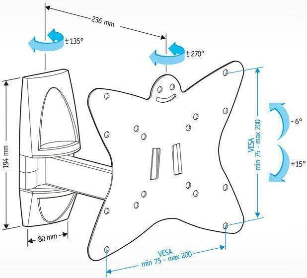 Кронштейн для LCD TV HOLDER LCDS-5004 10" – 26", 25 кг, расстояние от стены 80 - 235мм.