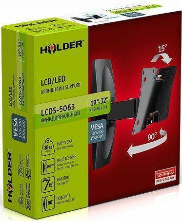 Кронштейн для LCD TV HOLDER LCDS-5063 черный глянец 19" – 32", 30 кг, расстояние от стены 65 - 265мм.