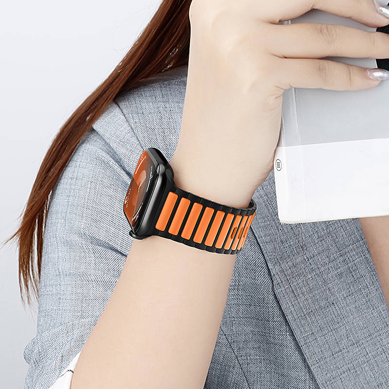 Ремешок для Apple Watch HOCO WA31 Flexible series two-color silicone strap (42/44/45/49 мм) черно-белый с оранжевым