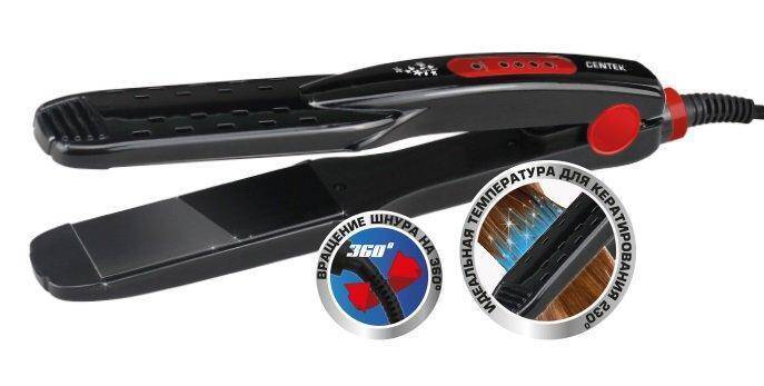 Выпрямитель для волос CENTEK CT-2009 40Вт, керамические пластины 90х32мм, LED индикатор