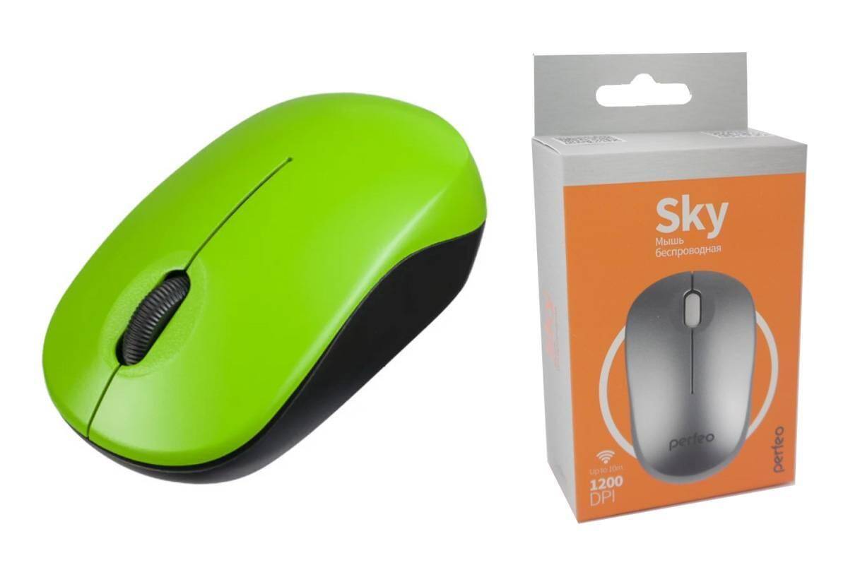 Мышь беспроводная Perfeo "SKY", 3 кн, DPI 1200, USB (зеленый)