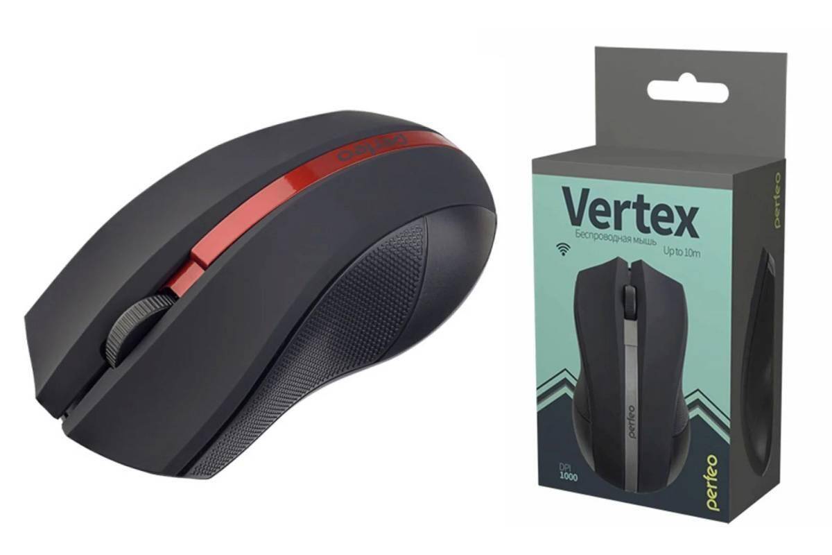 Мышь беспроводная Perfeo "VERTEX", 3 кн, DPI 1000, USB (черно-красный)