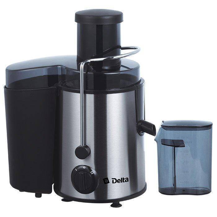 Соковыжималка DELTA DL-0232 черный/сталь 600 Вт, 2скорости+puls, стакан 1л, ПОДАРОК