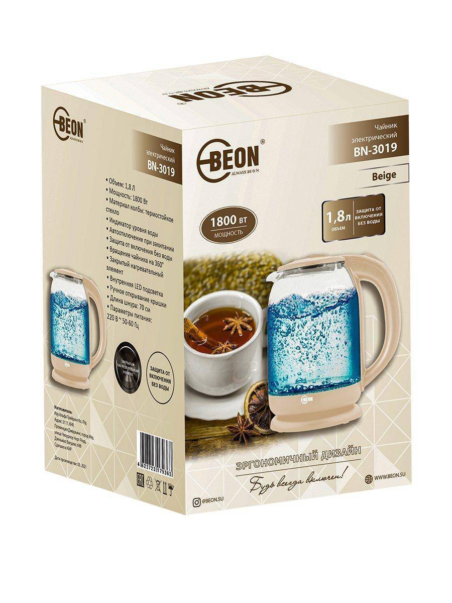 Чайник BEON BN-3019 бежевый 2200Вт,1,8л, стекло, подсветка
