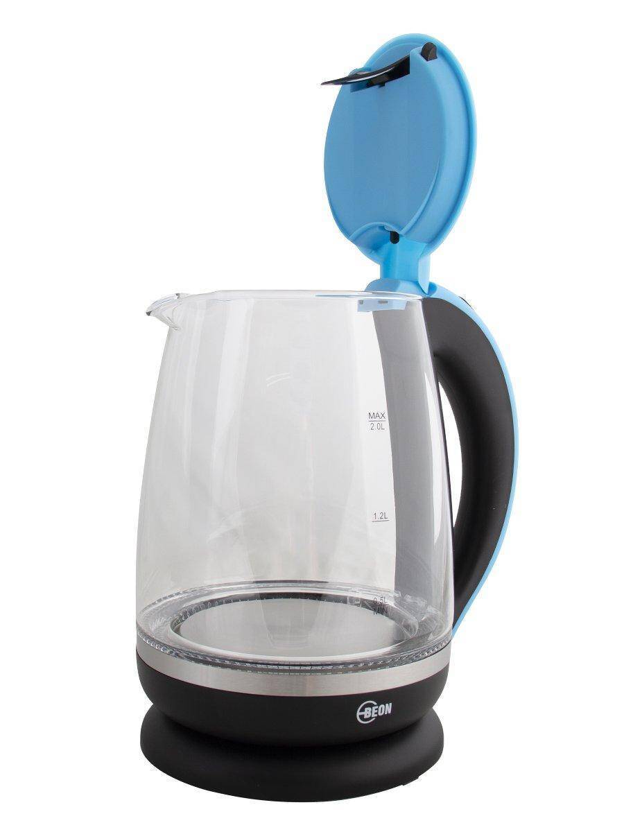Чайник BEON BN-3025 черный/голубой 2200Вт, 2,0л, стекло/нерж., LED