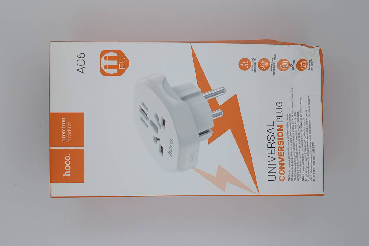 Сетевой адаптер-переходник Hoco AC6 универсальный зарядный конвертер (EU) (белый) (УЦЕНКА! МЯТАЯ УПАКОВКА)