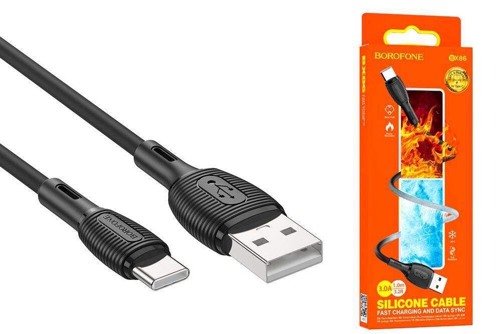 Кабель USB - USB Type-C BOROFONE BX86, 3A (черный) 1м (силиконовый) Кабель USB - USB Type-C BOROFONE BX86, 3A (черный) 1м (силиконовый)