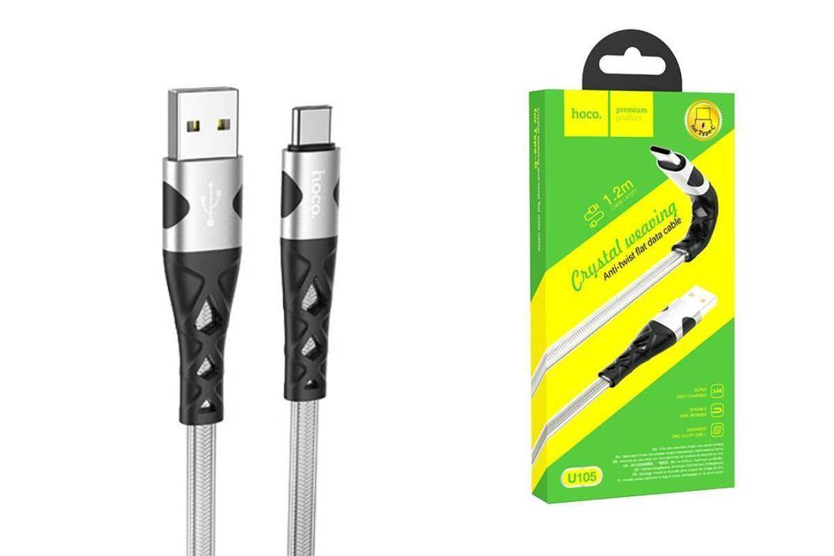 Кабель USB - USB Type-C HOCO U105 3A (серебристый) 1м (с усилением сгиба, двойная оплетка)