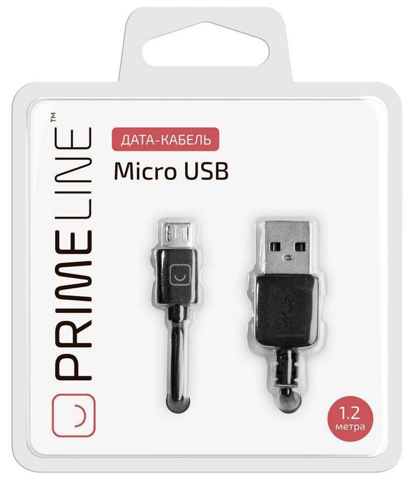 Кабель USB - MicroUSB Prime Line (7202) (черный) 1.2м