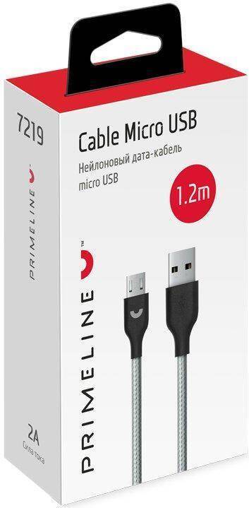 Кабель USB - MicroUSB Prime Line (7219) (серый) 1,2м (нейлон)