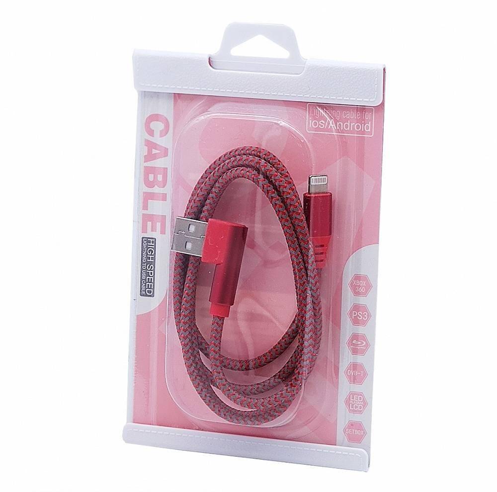 Кабель USB - Lightning Орбита KM-59, 2A (красный) 1м (угловой USB)