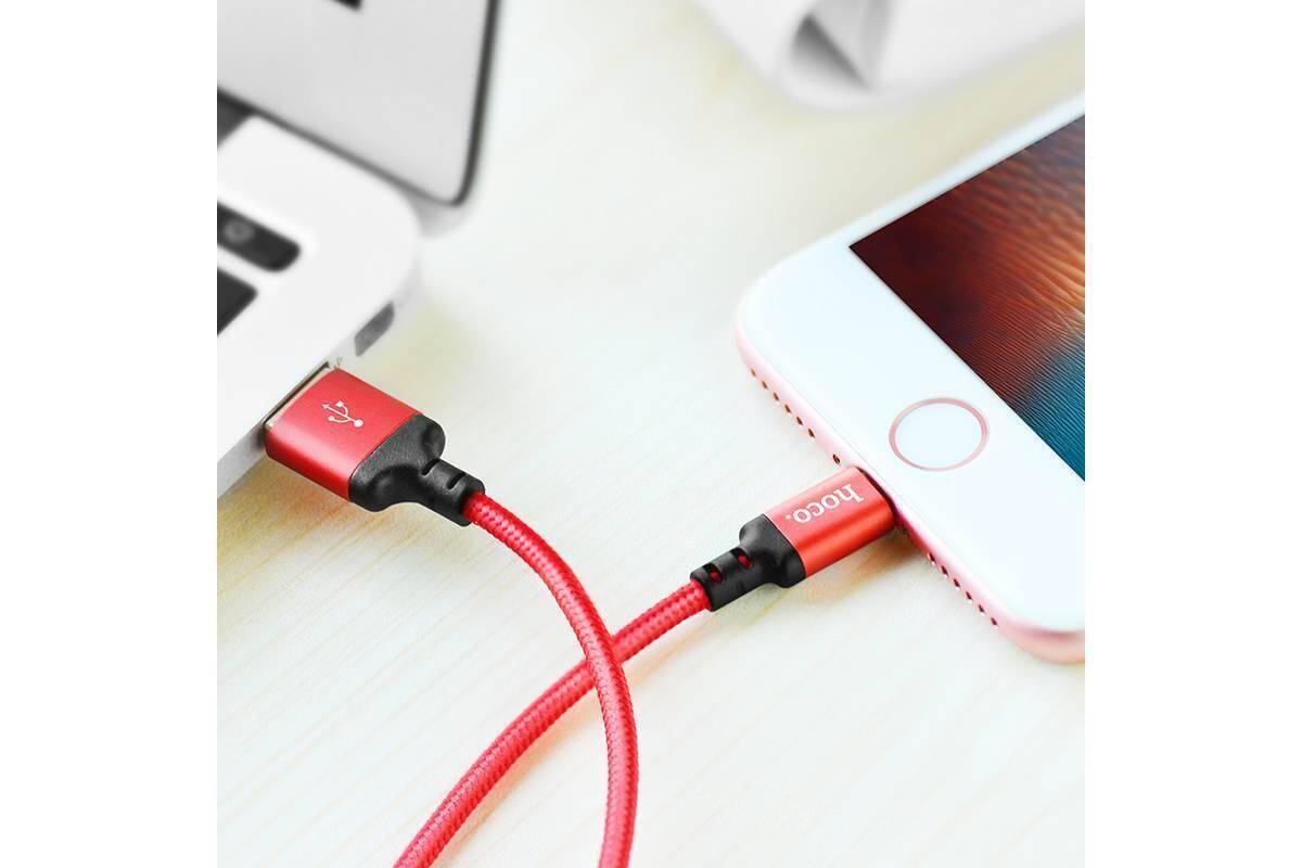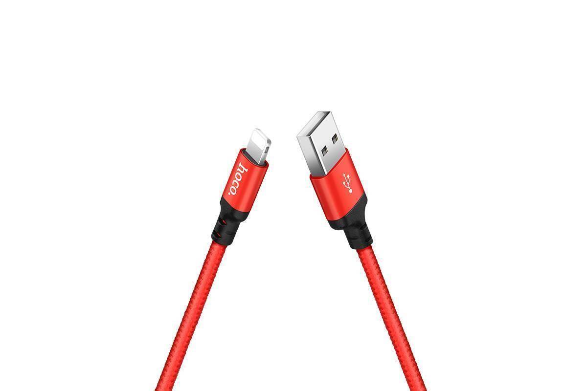 Кабель USB - Lightning HOCO X14, 2,4A (красный) 1м (в оплетке)