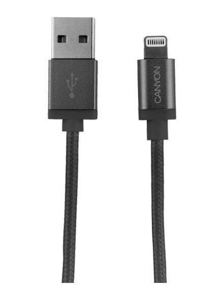 Кабель USB - Lightning Canyon MFI-3 Apple 8-pin (черный) 1м (плетеный нейлон и гибкое металлическое покрытие)